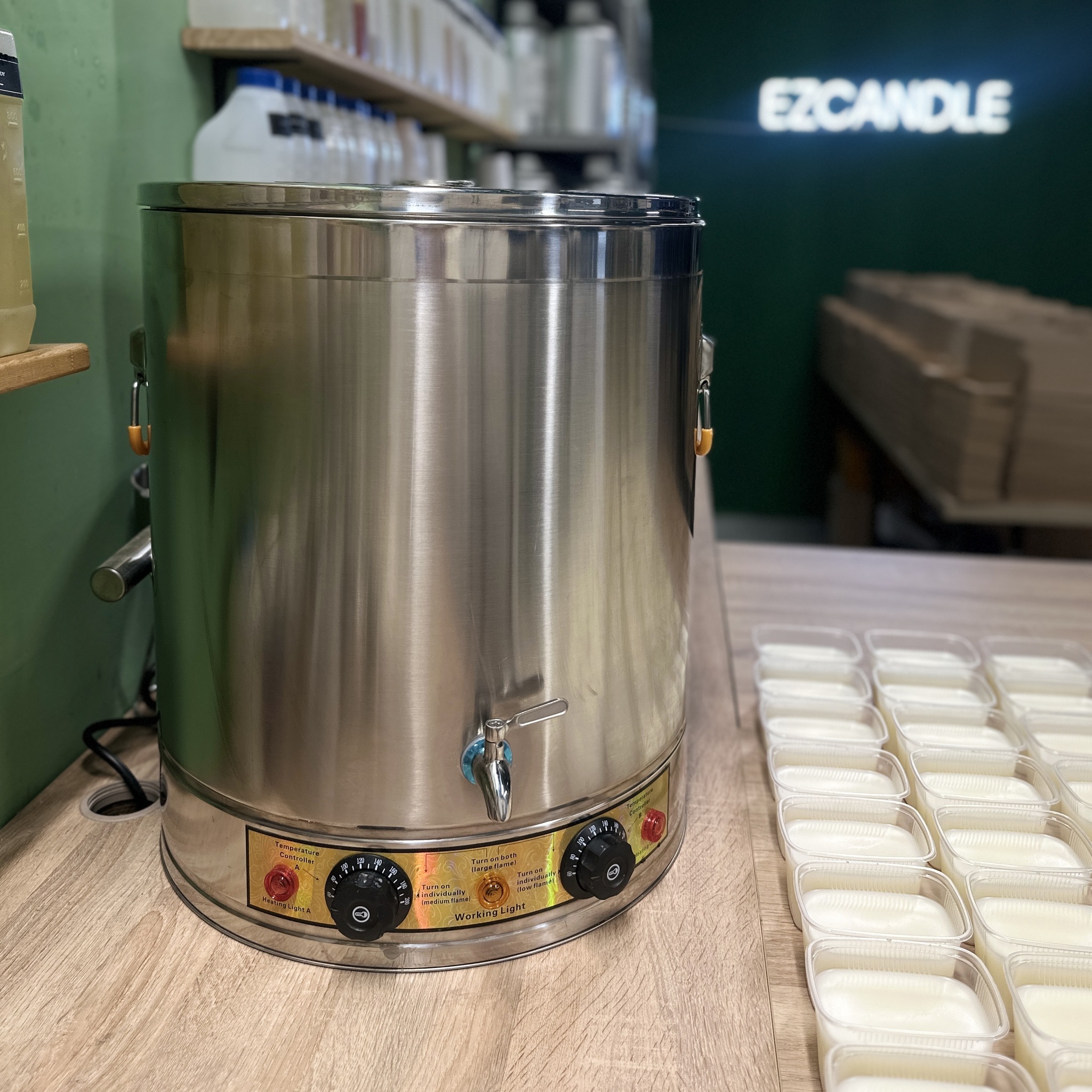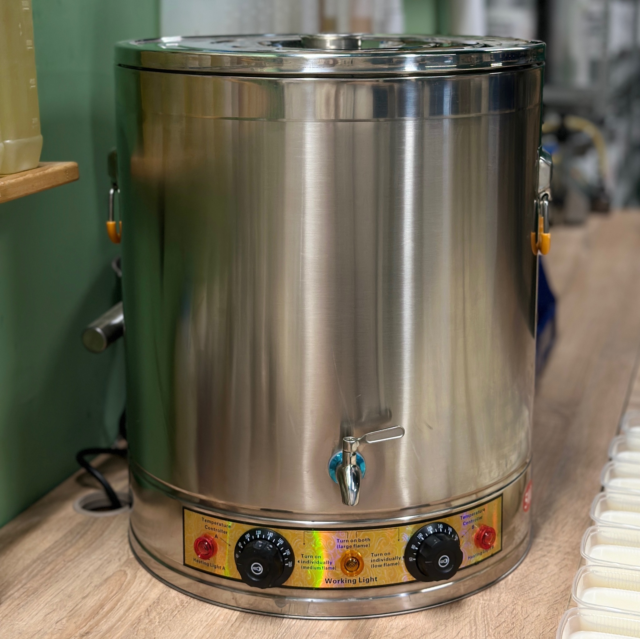 Удобный воскоплав объемом 30 литров будет незаменимым помощником любому свечевару. Двойные стенки и дно обеспечивают оптимальный нагрев и сохранение температуры воска.